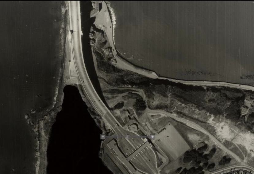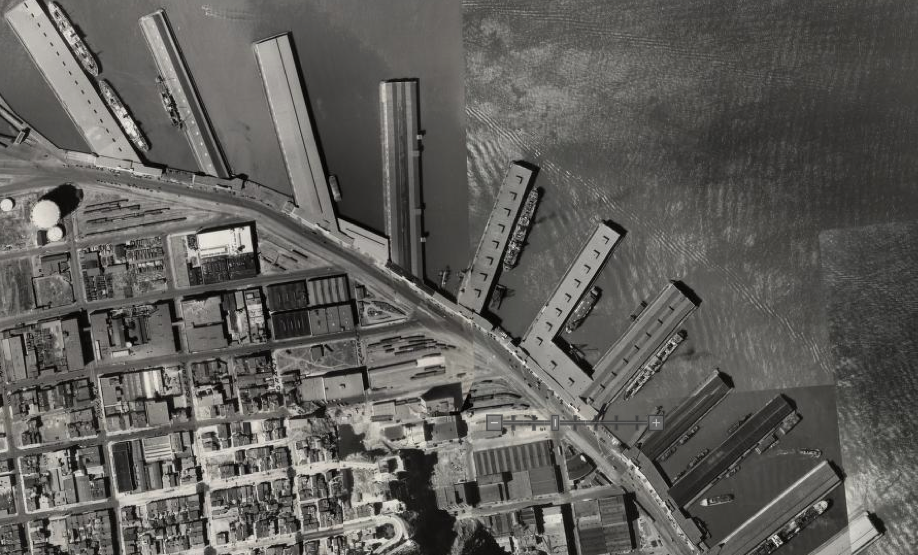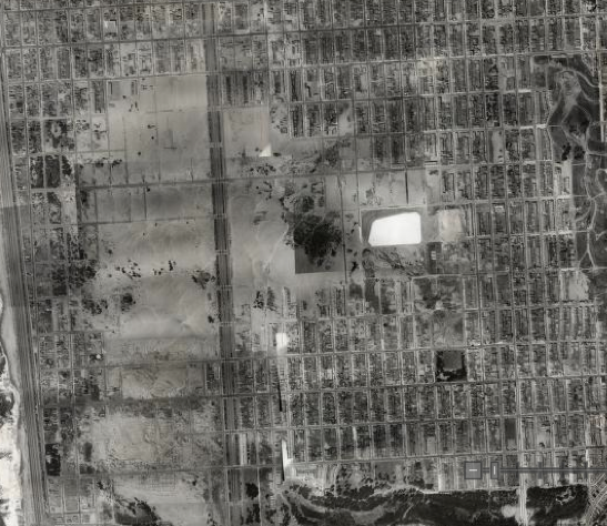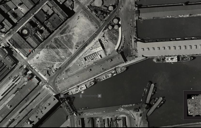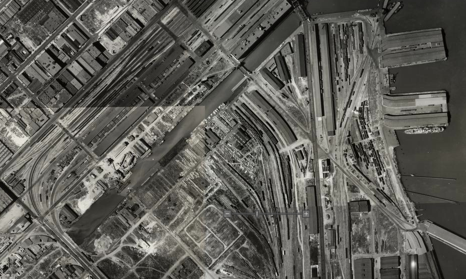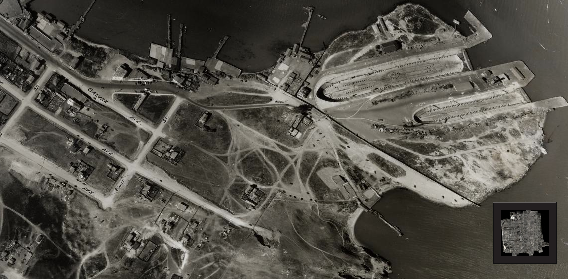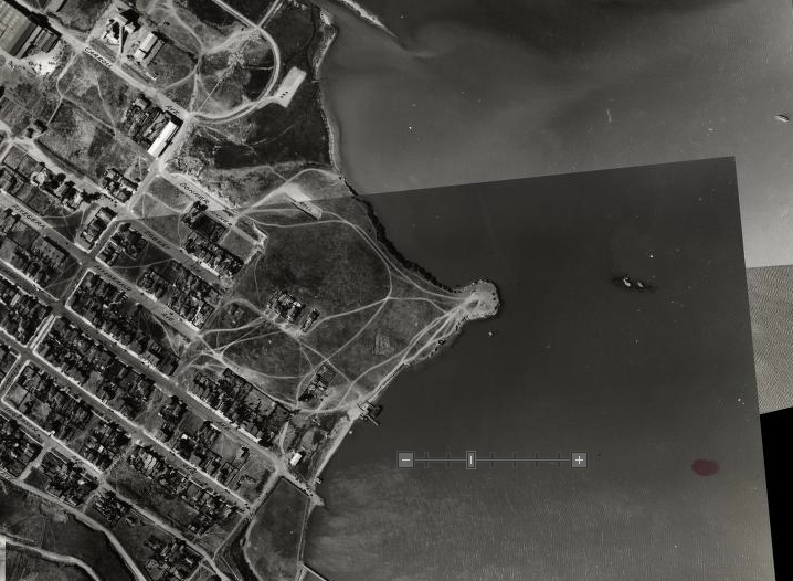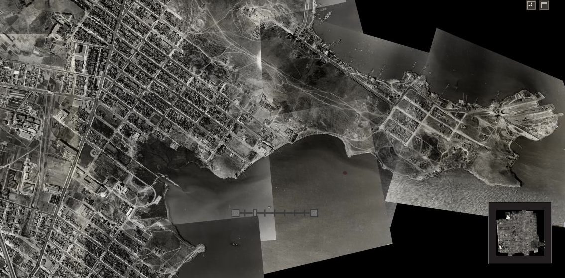 The 1938 photos are from an aerial survey book that map maven David Rumsey scanned and assembled as a highly detailed and zoomable map: