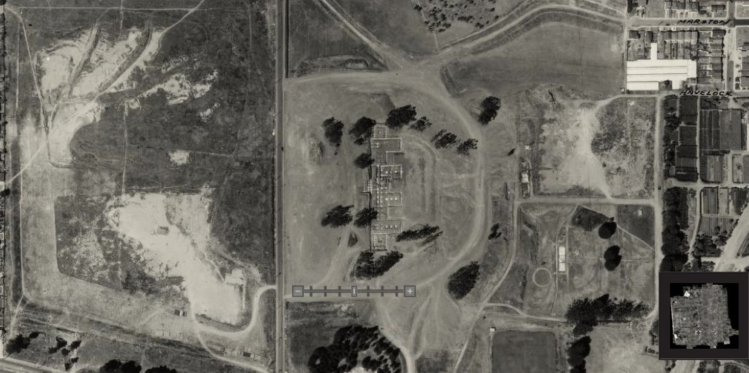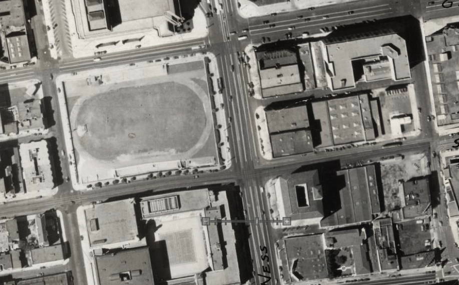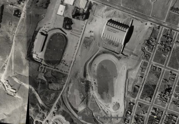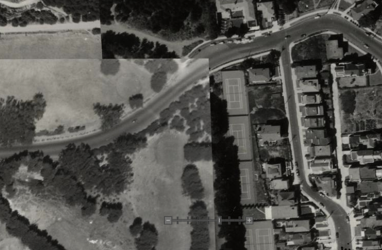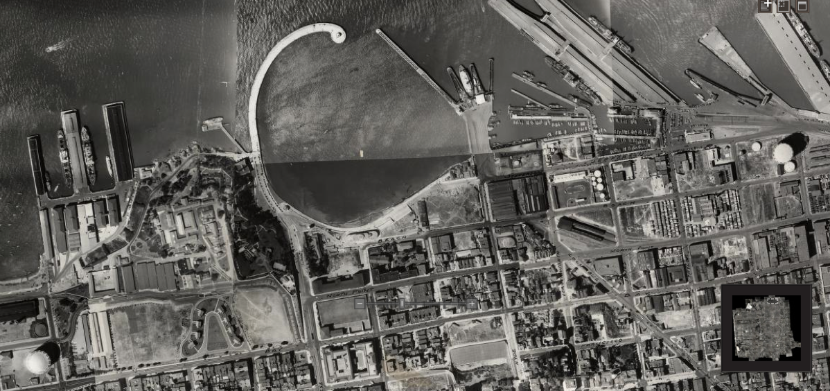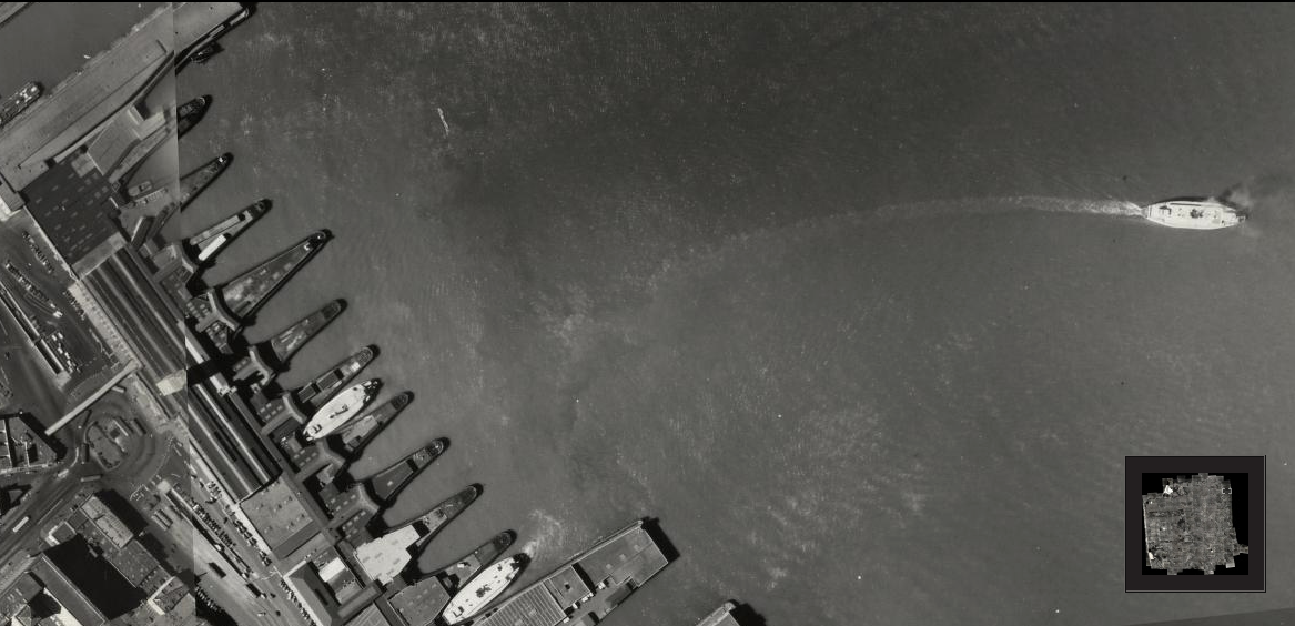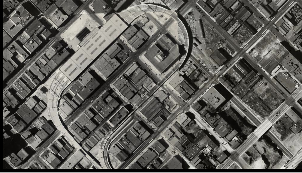 The 1938 photos are from an aerial survey book that map maven David Rumsey scanned and assembled as a highly detailed and zoomable map: