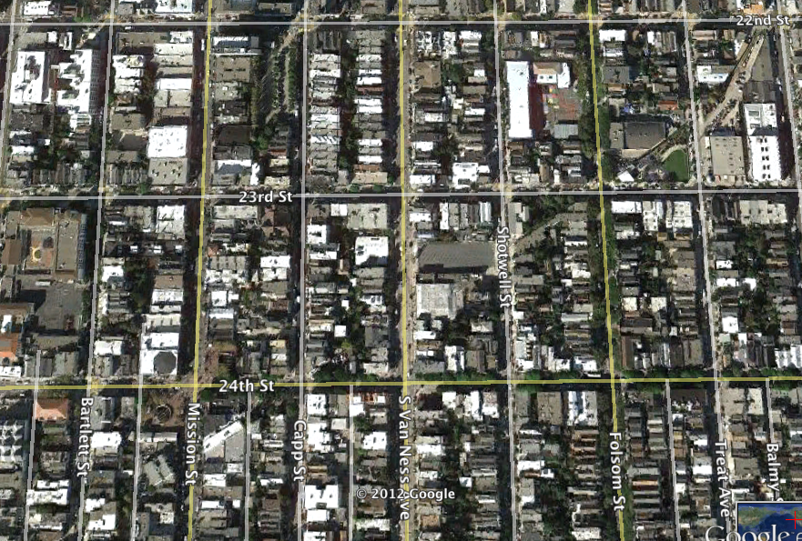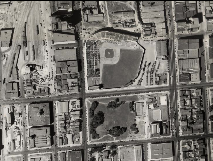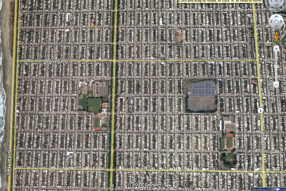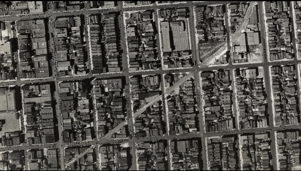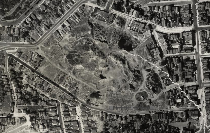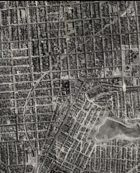 Here’s a side-by-side comparison of San Francisco neighborhoods and landmarks from a low-level aerial photo survey from 1938 and Google Earth in 2012 at roughly the same scale.