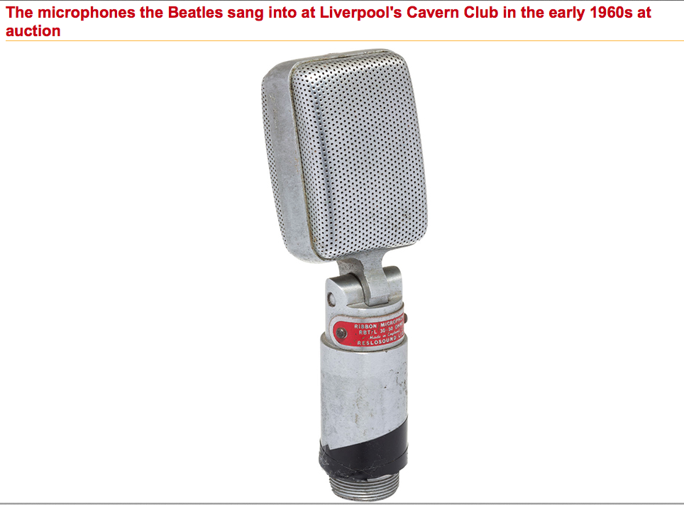 Three Reslo microphones, along with their stands, that were used by The Beatles – along with a host of important early British rock n’ roll acts – at the famed Cavern Club in Liverpool will form the centerpiece of an exceptional grouping of Beatles and Beatles-related memorabilia in Heritage Auctions’ Dec. 6 Entertainment & Music Memorabilia Auction. The microphones are estimated at $5,000+ each and will be offered individually. “If only these microphones could play back for us the music they helped create in those early days,” said Garry Shrum, Music Consignment Director at Heritage Auctions. “Talk about a piece of material culture that bore witness to greatness. The Beatles became The Beatles while singing into these mics.” The Beatles gave more live performances at the Cavern Club than at any other venue – 292 to be exact. It was at the underground club on Mathew Street that the group perfected their stage presence over hundreds of hours spent on stage. The group often used the club as a rehearsal space as well, working through many of their early compositions. Nearly every photo of the Beatles at the Cavern shows the group with Reslo microphones on stage. In addition to the Beatles, many of the other Merseyside groups from the era used the Cavern Club’s microphones: Gerry and the Pacemakers, The Searchers, The Big Three, Kingsize Taylor and the Dominoes, Rory Storm and the Hurricanes, Billy J. Kramer and the Dakotas and many more. The microphones were in the possession of Mal Jefferson, a sound engineer and bassist for the Mastersounds (the group that assumed the Beatles’ Cavern residency in 1963). They have been in Jefferson’s possession from the 1960s until earlier this year, when they were sold to the present owner.