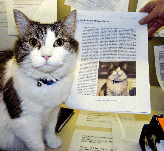 His unique story was revealed by Dr. David Dosa, a geriatrician and assistant professor at Brown University, who claims Oscar’s predictions have rarely been wrong in the past six years. In fact, he has even proved medical staff wrong at the Steere House Nursing and Rehabilitation Center in Rhode Island, where he was adopted seven years ago as a kitten.