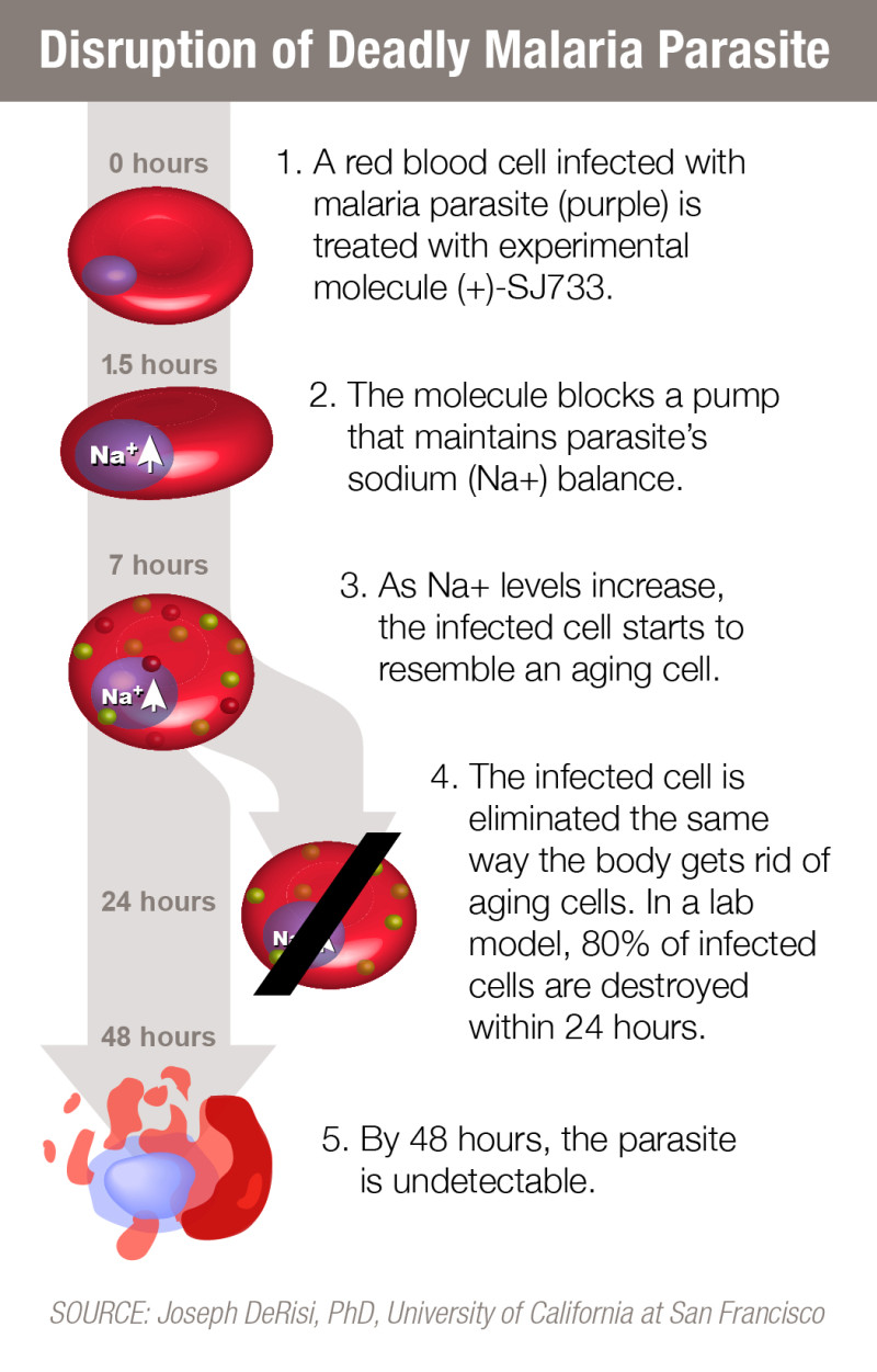 The compound, (+)-SJ733, was developed from a molecule identified in a previous St. Jude-led study that helped to jumpstart worldwide anti-malarial drug development efforts. Malaria is caused by a parasite spread through the bite of an infected mosquito. The disease remains a major health threat to more than half the world’s population, particularly children. The World Health Organization estimates that in Africa a child dies of malaria every minute.