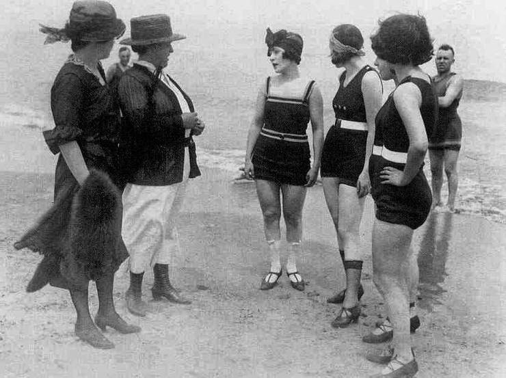California bathers being confronted by policewomen because they were ‘scantily clad’, 1922