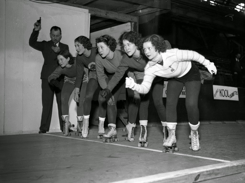 A woman hikes up her new nylons in Stockholm, Sweden c.1956