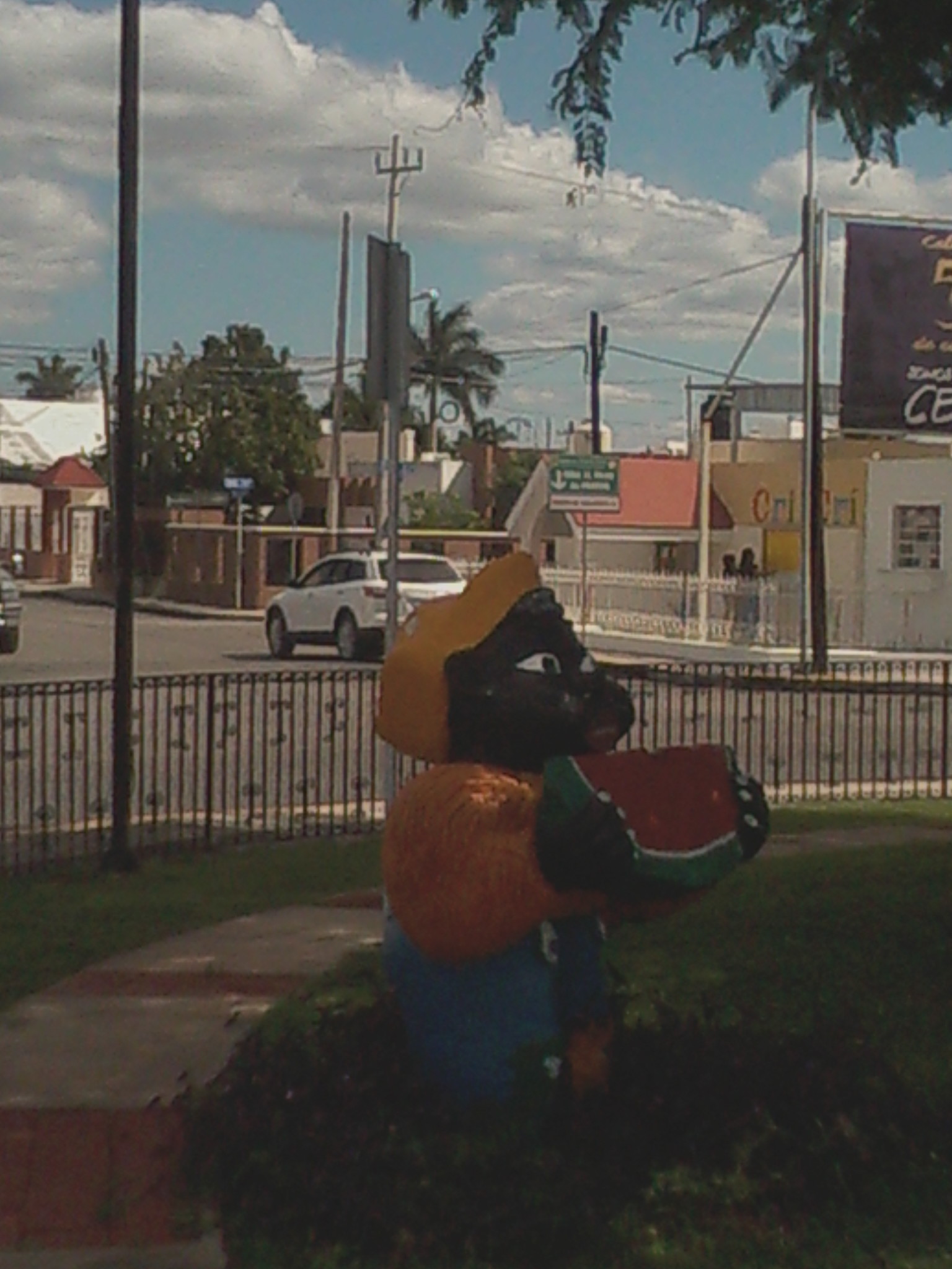 (In other news I think I’ve figured out how to get the pictures off of my digital camera and on here so I can add some illustrations of the stuff I’ve been seeing. Stuff like this in a traffic circle in front of the pre-school across street: