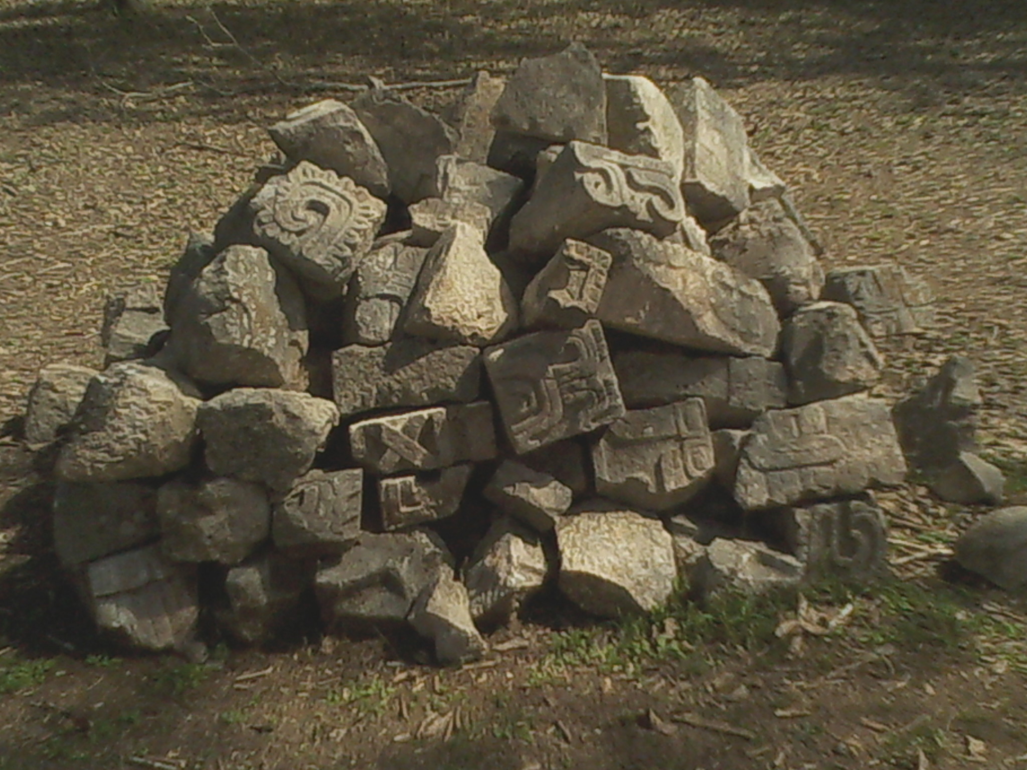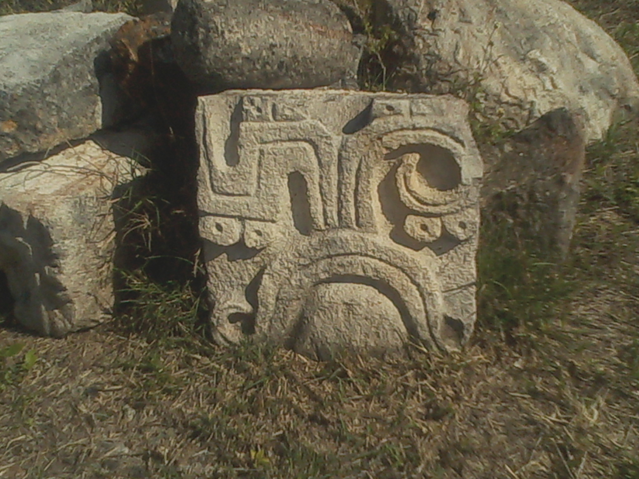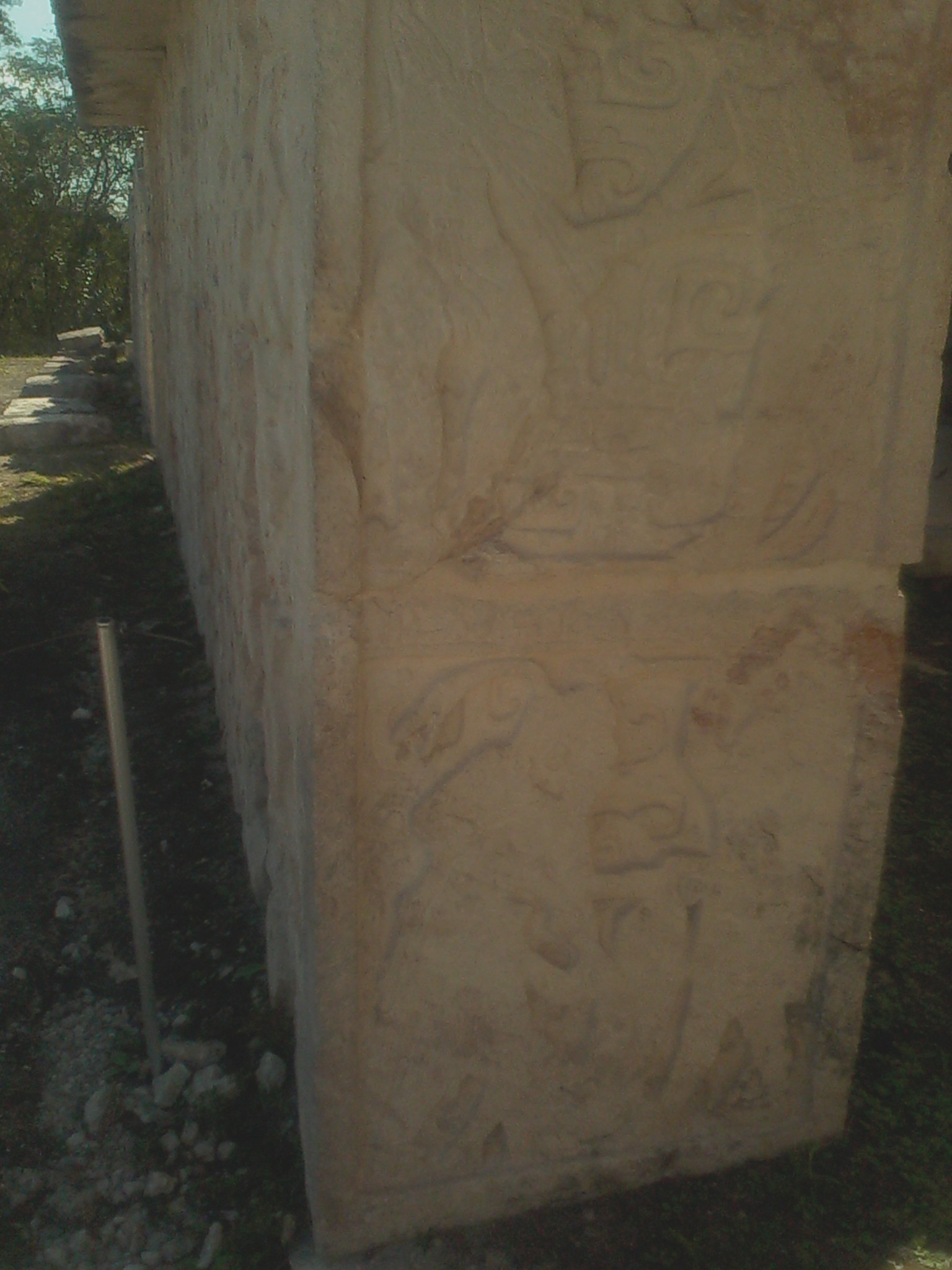 Some of the elements found in situ have legible glyphs on them: