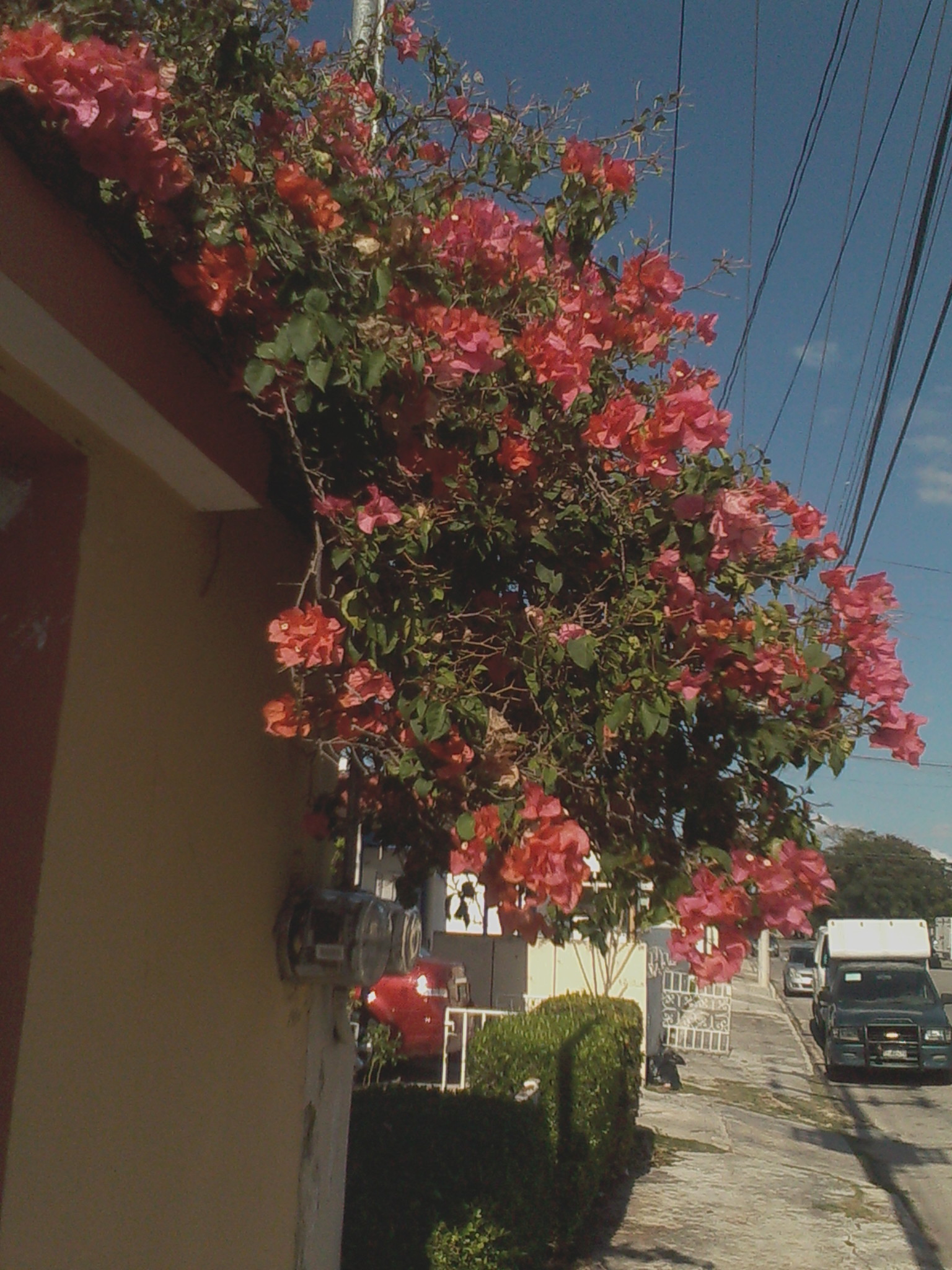I decided today to share the colorful beauty that surrounds me by recording only the flora that I pass on the few blocks from the bus to my guest home.