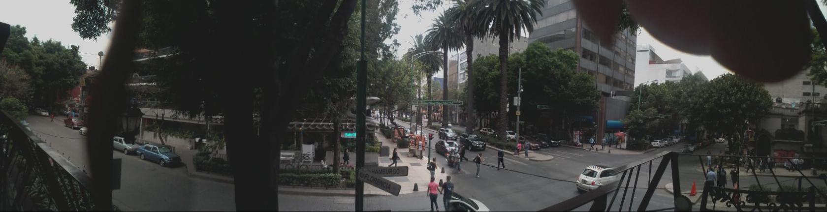 Having café Americano on a balcony overlooking the intersection of Hamburg Strasse and Via Firenze in my temporary neighborhood, la Zona Rosa
