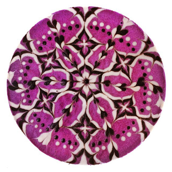 These mandalas are the creations of baker Stephen McCarty‘s Sukhavati Raw Desserts, all are vegan and several are all-raw. Not my first dietary choices by I’d not push my chair away from the table were they presented to me.