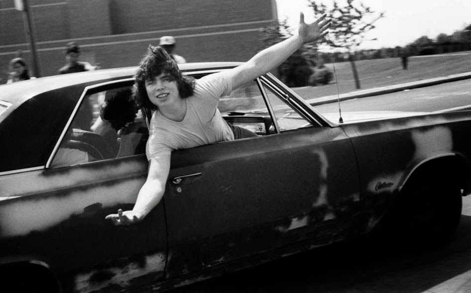 1977: Joan Jett is not pissed off at me. She is just being Joan! We were all hanging around backstage waiting for Joan and the rest of The Runaways to take the stage. In a thousand years when a historian finds this photo they will be able to pinpoint the exact location by looking at the hieroglyphics on the wall of The Whiskey.
