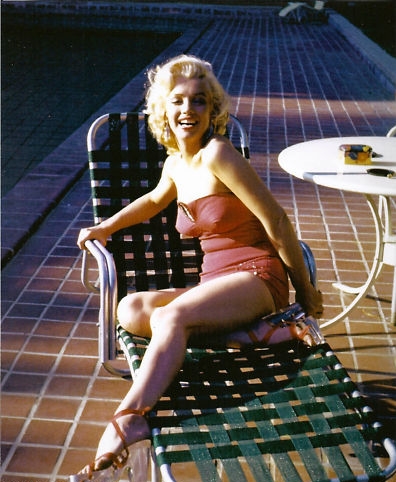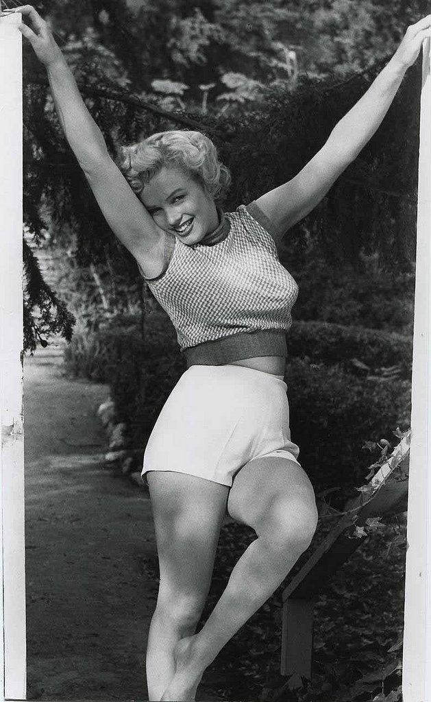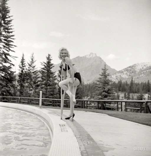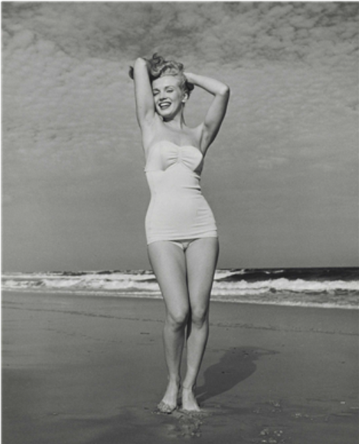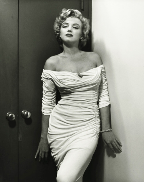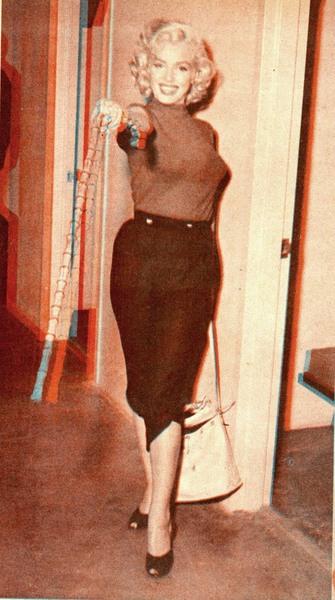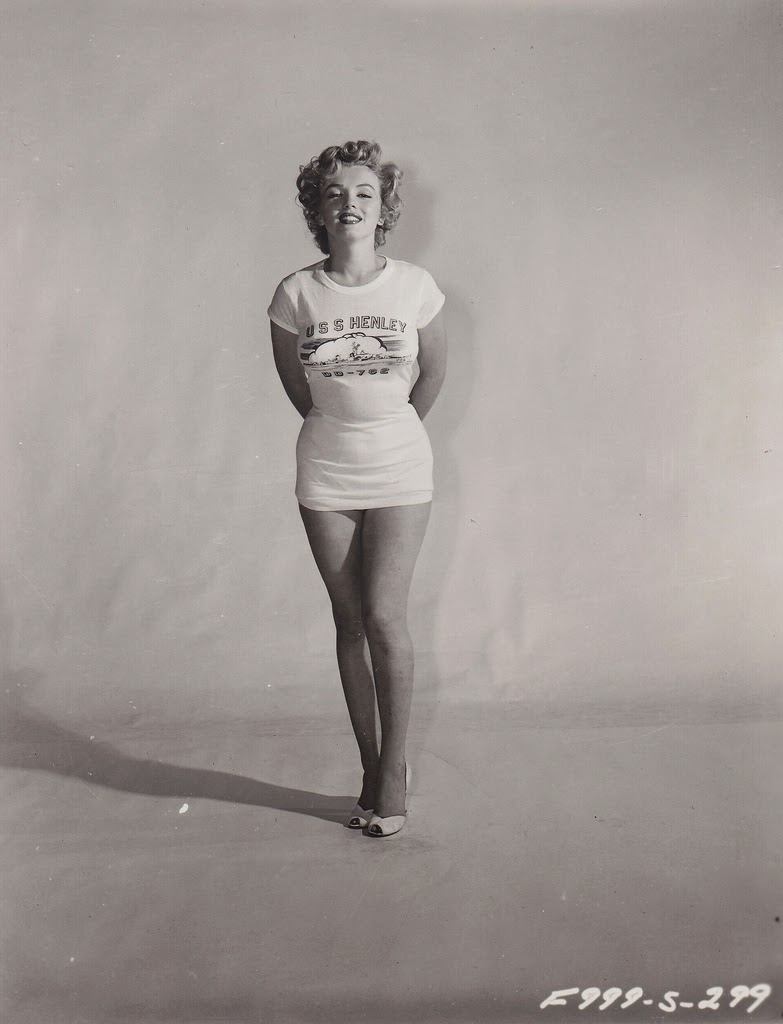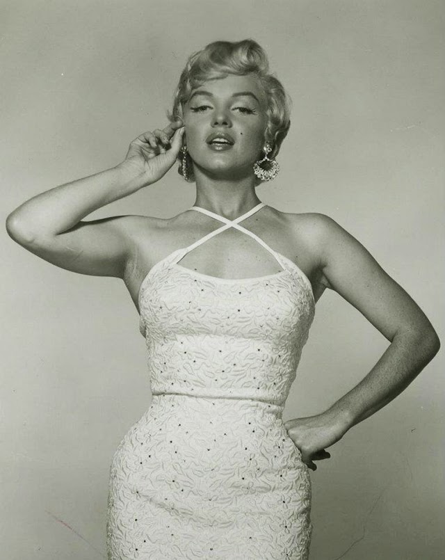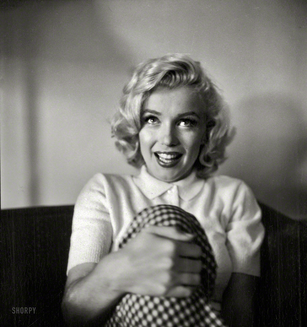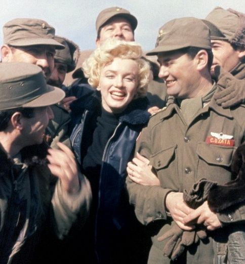 Marilyn Monroe, motion picture actress, appearing with the USO Camp Show, “Anything Goes,” poses for the shutterbugs after a performance at the 3rd U.S. Inf. Div. area. February 17, 1954. Cpl. Welshman. (Army)