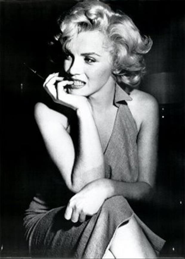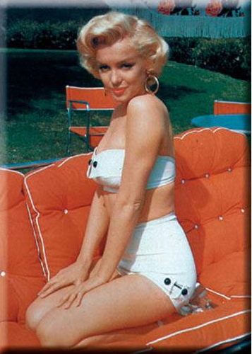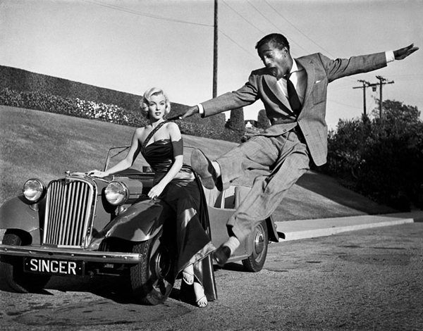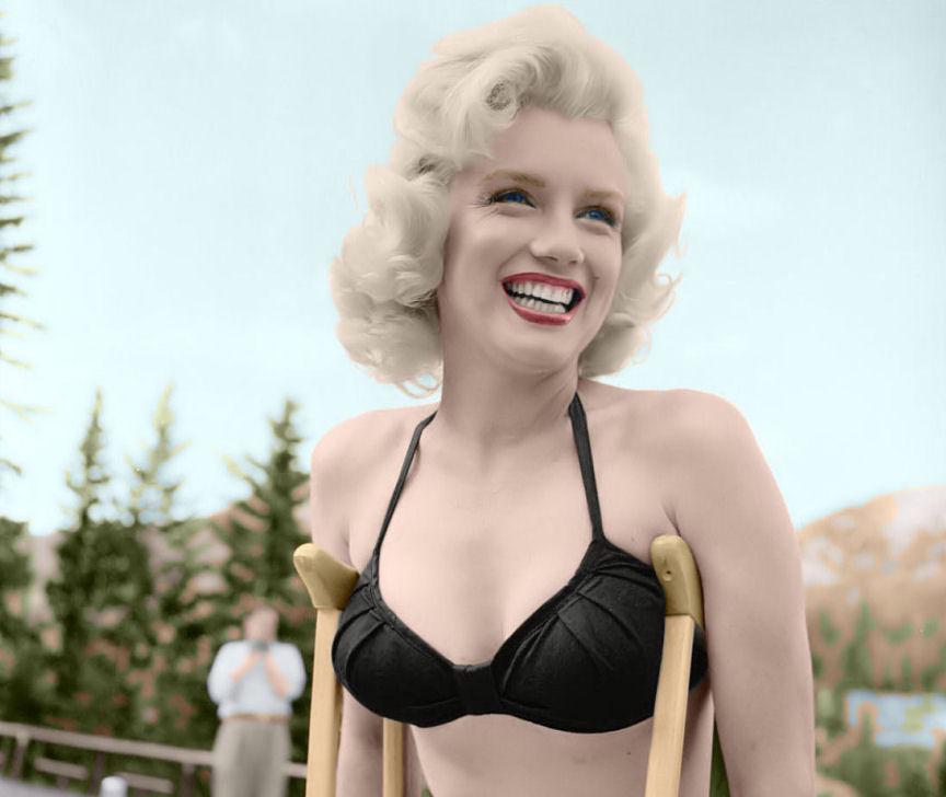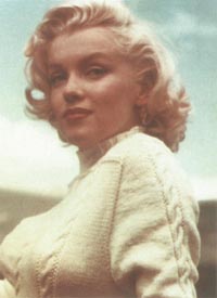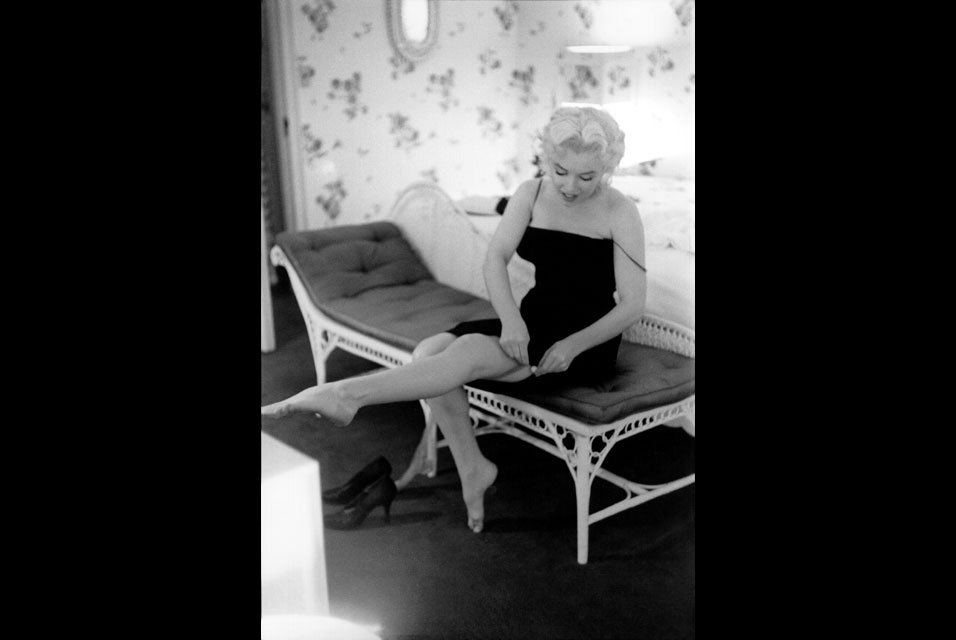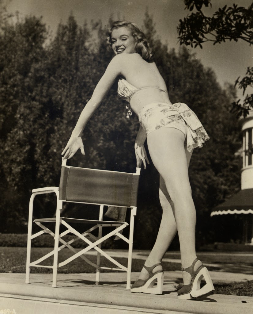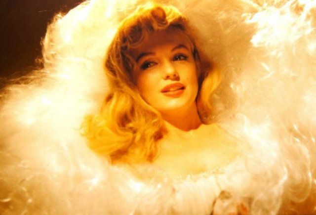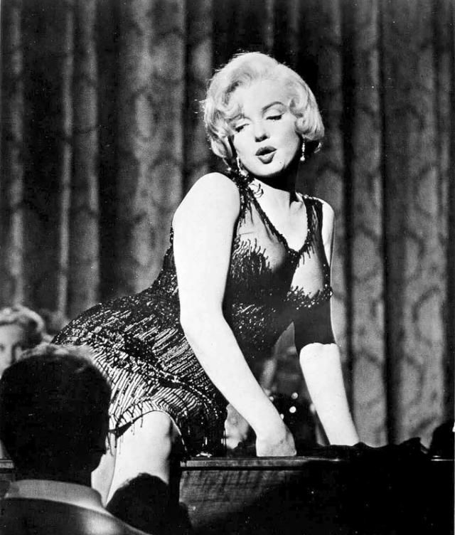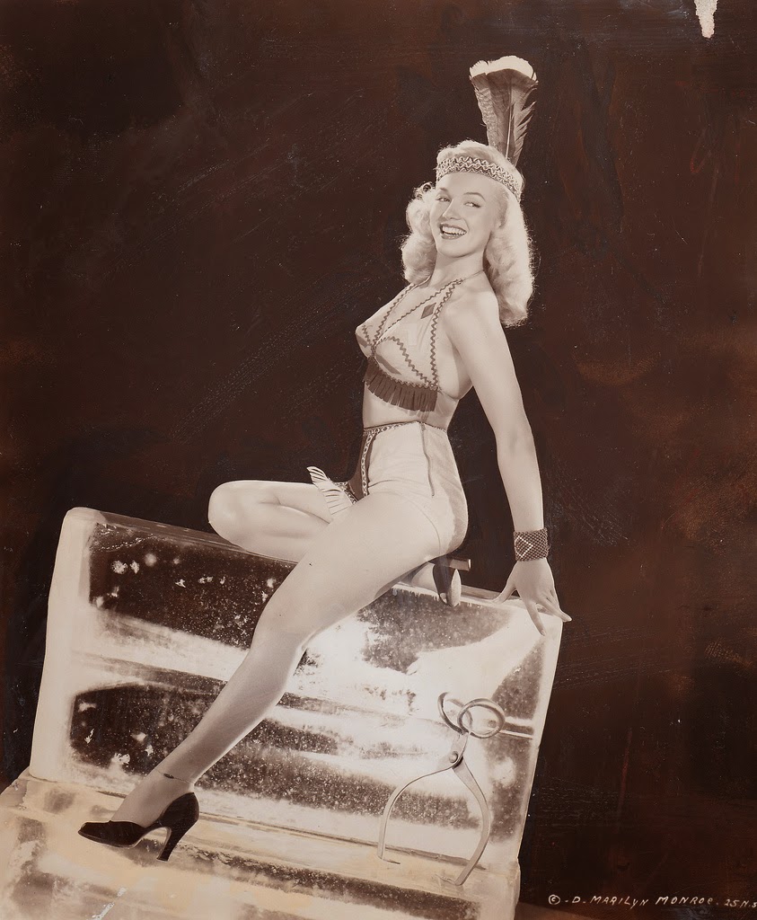 Marilyn Monroe, motion picture actress, appearing with the USO Camp Show, “Anything Goes,” poses for the shutterbugs after a performance at the 3rd U.S. Inf. Div. area. February 17, 1954. Cpl. Welshman. (Army)