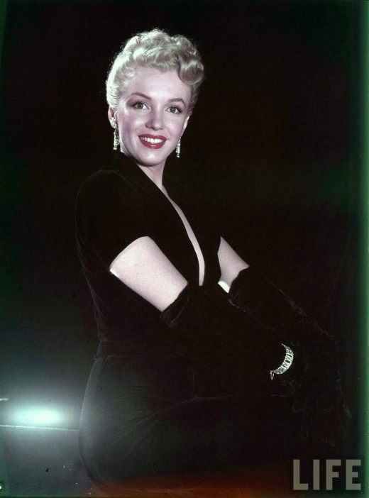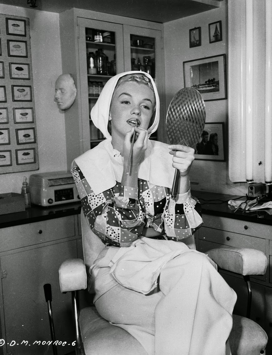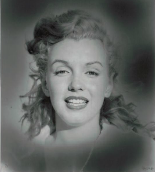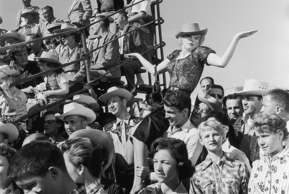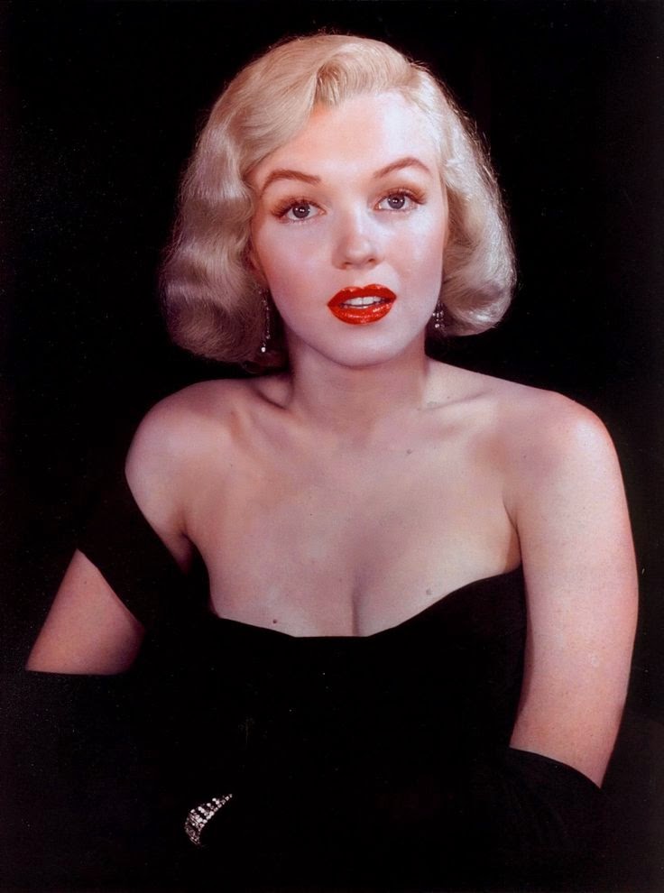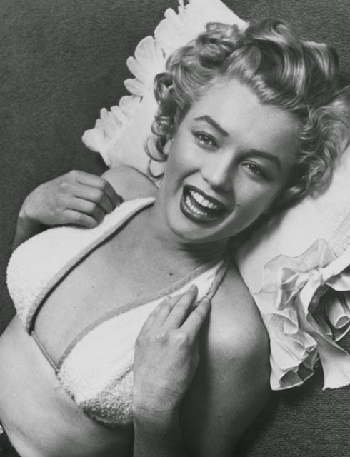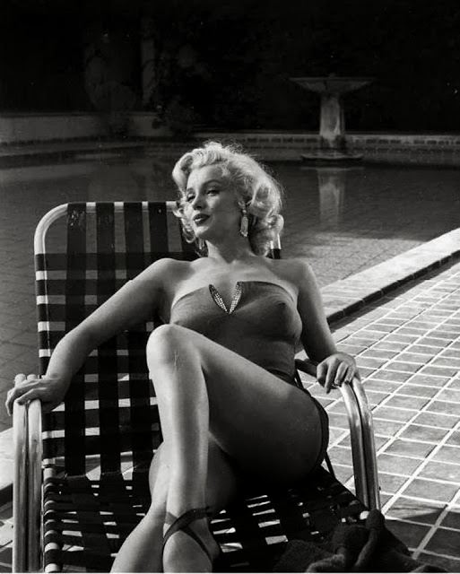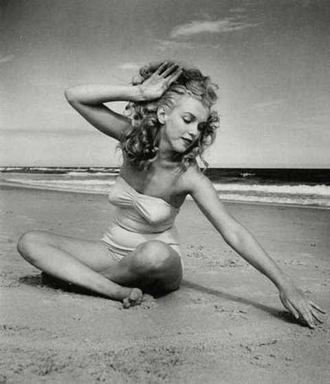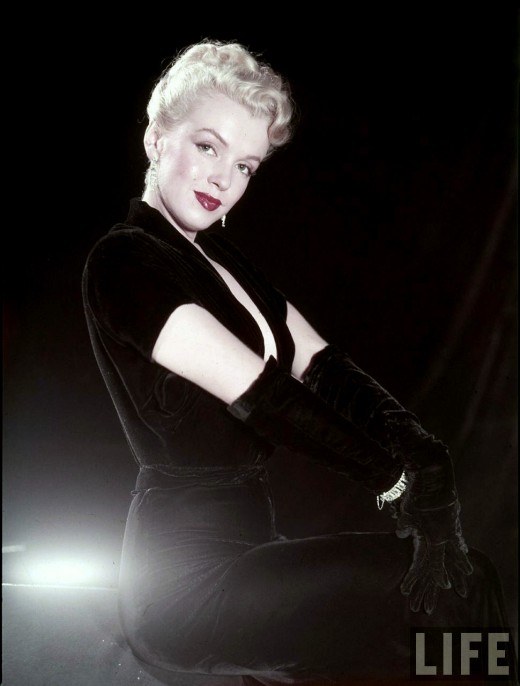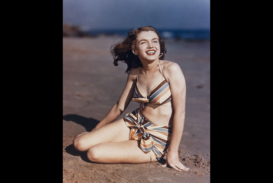 Marilyn Monroe, motion picture actress, appearing with the USO Camp Show, “Anything Goes,” poses for the shutterbugs after a performance at the 3rd U.S. Inf. Div. area. February 17, 1954. Cpl. Welshman. (Army)