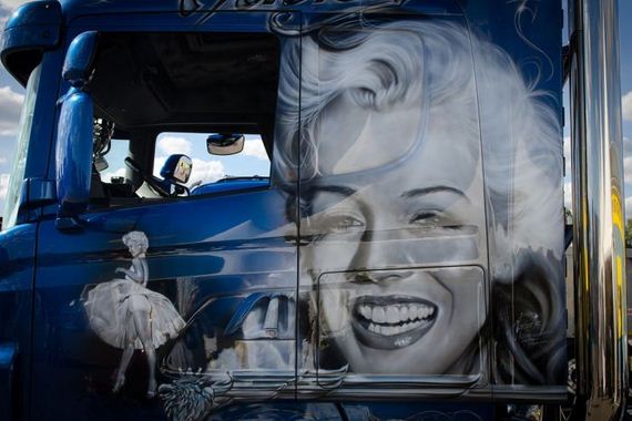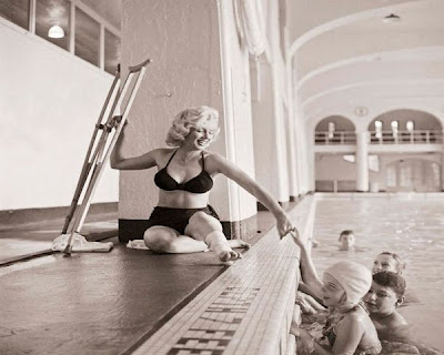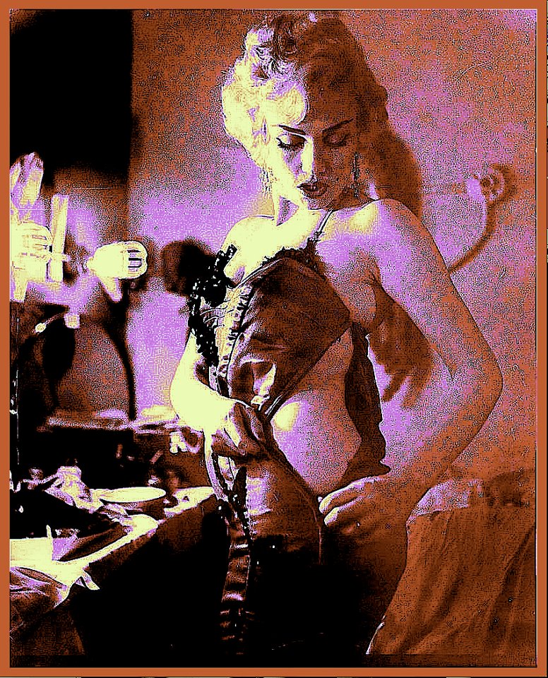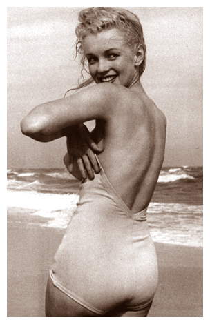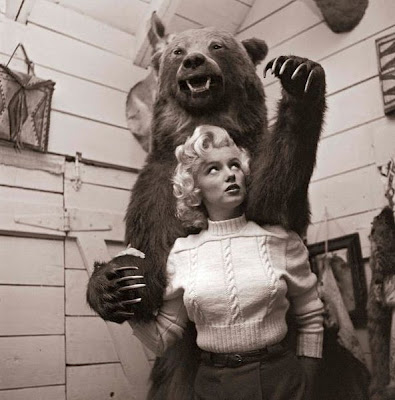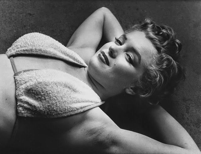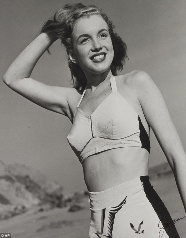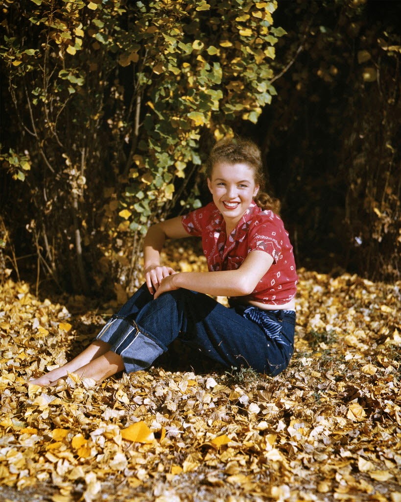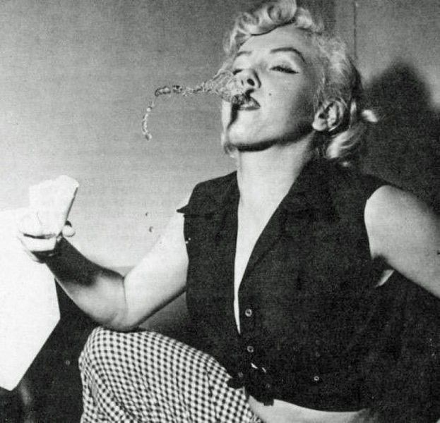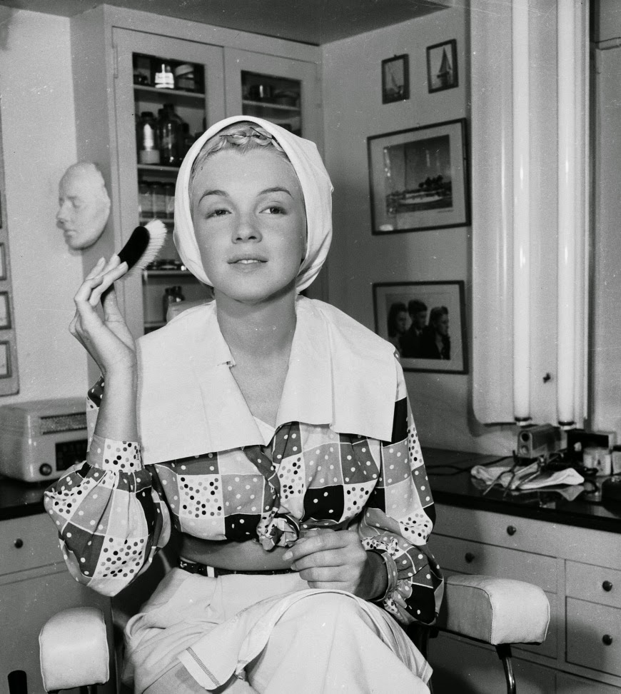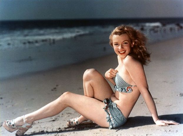 Marilyn Monroe, motion picture actress, appearing with the USO Camp Show, “Anything Goes,” poses for the shutterbugs after a performance at the 3rd U.S. Inf. Div. area. February 17, 1954. Cpl. Welshman. (Army)