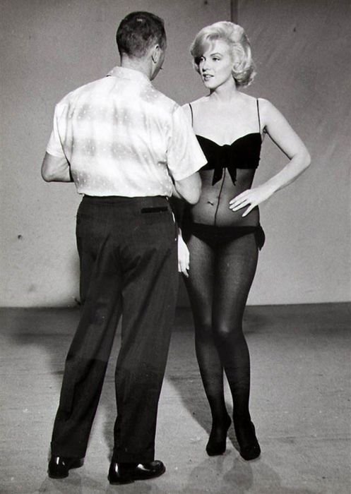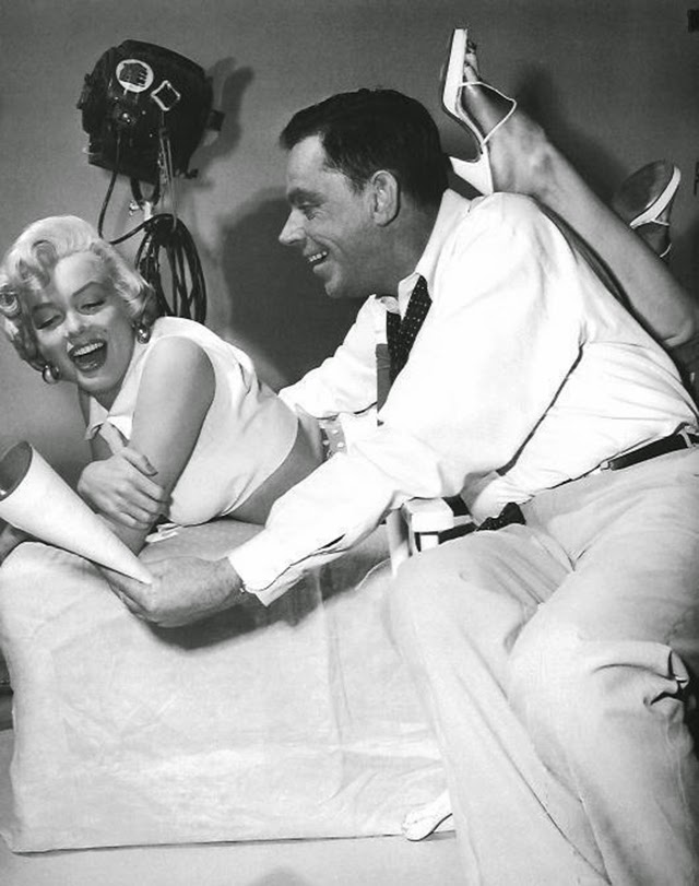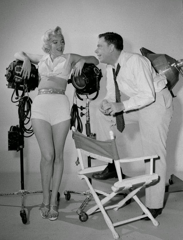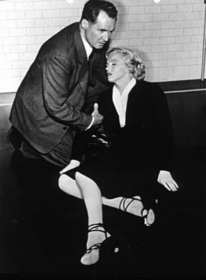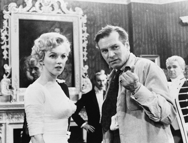 1957, London, England, UK — Original caption: London, England: Sir Laurence Olivier, co-star and director of the film, emphasizes a point for actress Marilyn Monroe on the set of their movie “The Sleeping Prince” here. Marilyn portrays an American showgirl and Sir Laurence plays a Grand Duke in their first film venture together. — Image by © Bettmann/CORBIS