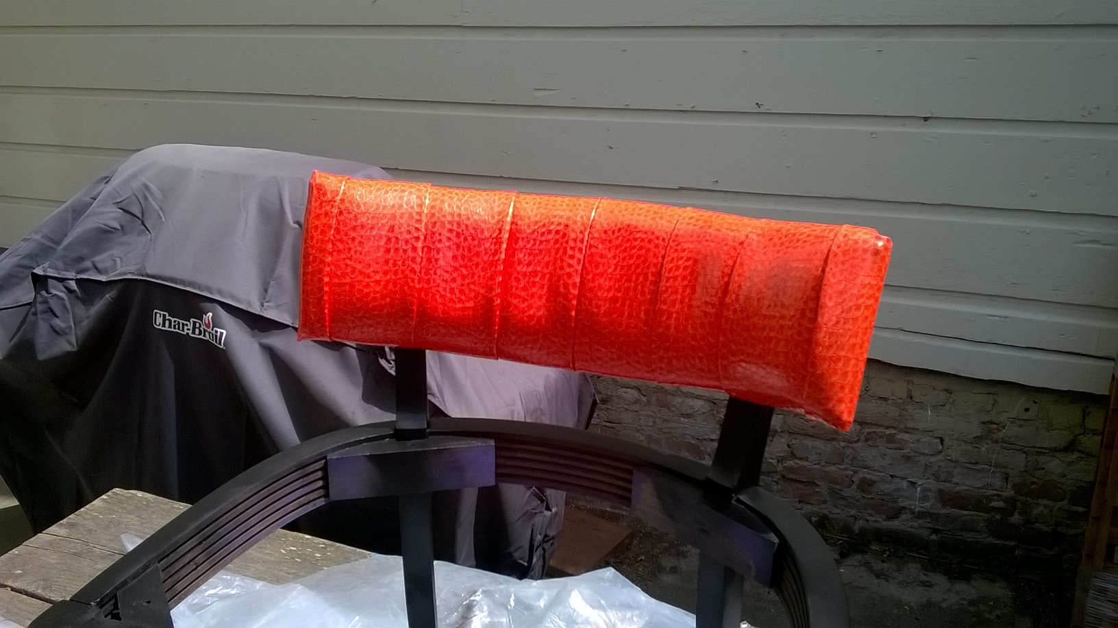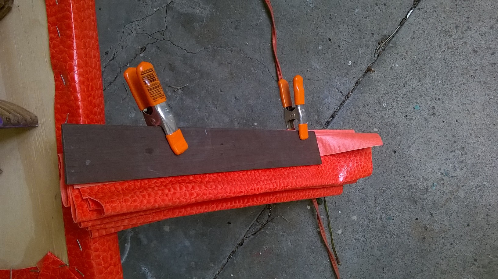 This worked quite well and I wrapped the vinyl over a piece of foam and attached it in back: