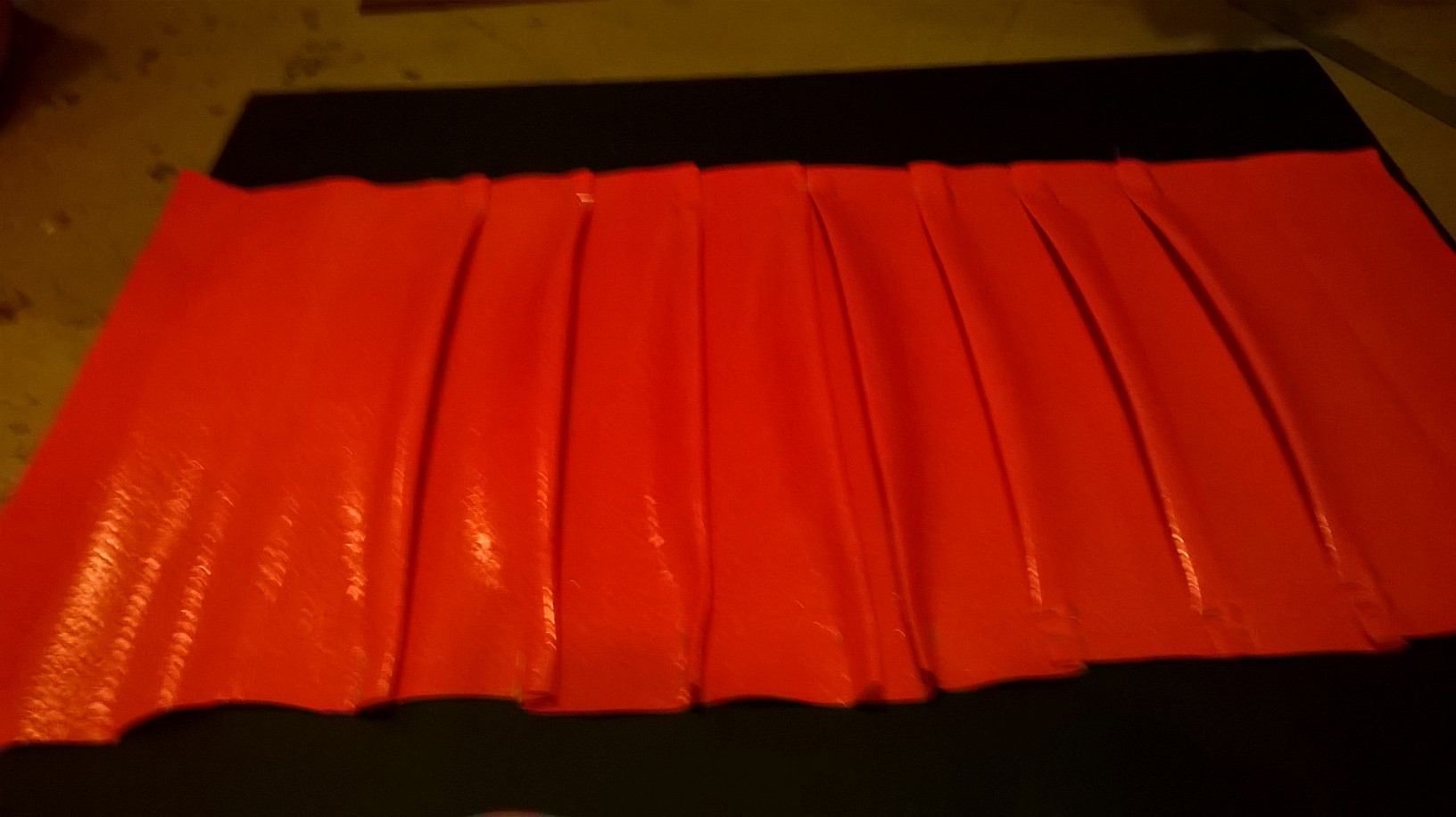 I began by folding the material where the pleats would be, heated the edges with a hairdryer, and clamped it for several days:chairback01 chairback02
