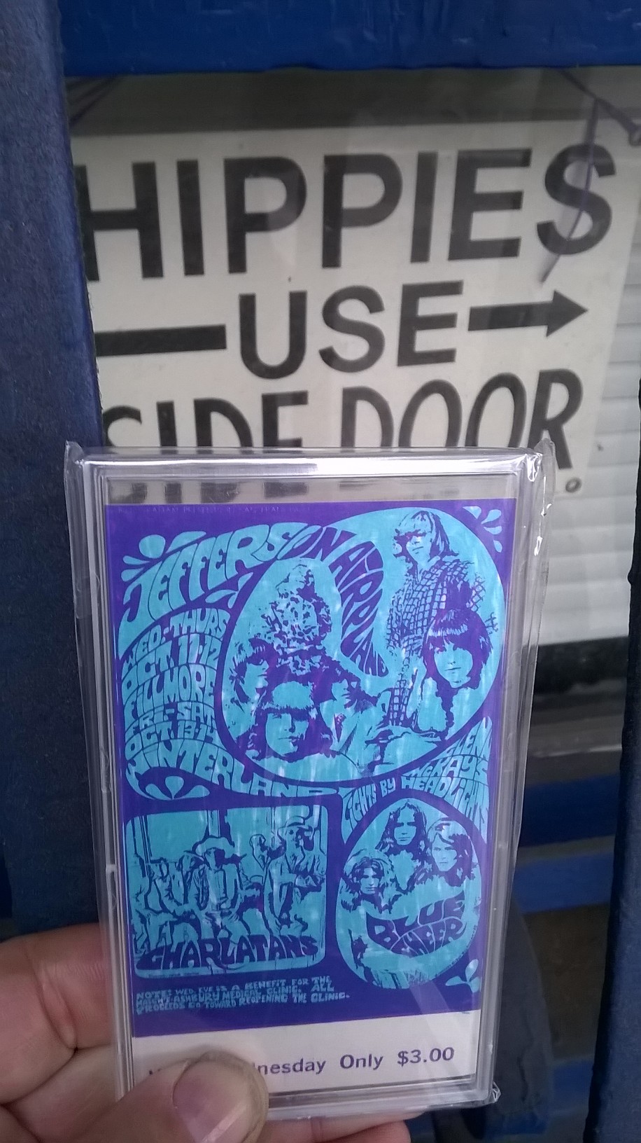 Original 1st printing 2.25″ x 4.25″ concert ticket for Jefferson Airplane with Blue Cheer and the Charlatans performing in a benefit for the Haight-Ahsbury Free Clinicat the Fillmore Auditorium and Winterland in San Francisco, CA on Oct 11-14, 1967. Art by Bonnie MacLean (from photos by Herb Greene).