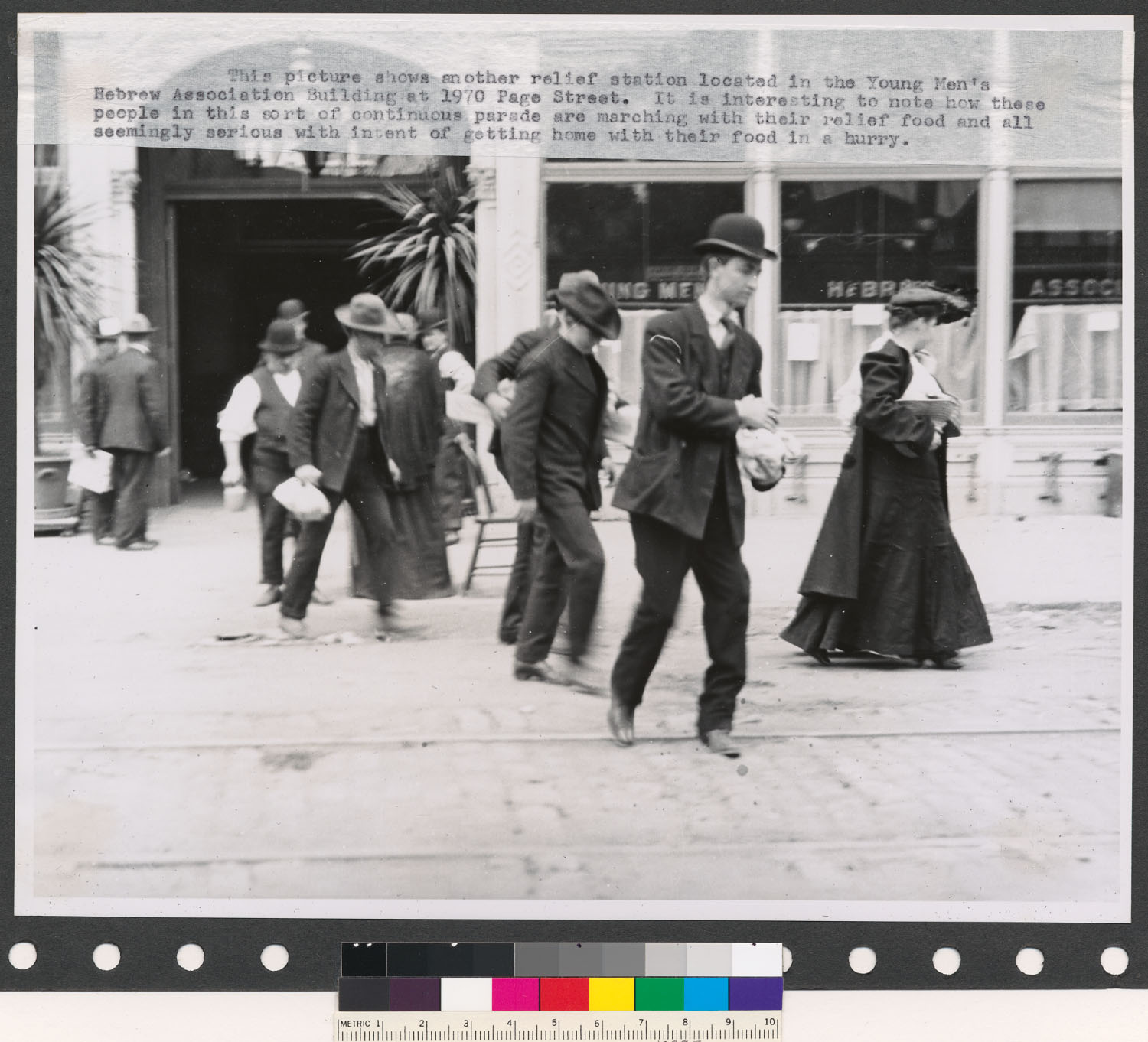 Page St near Clayton, Apr 1906 Quake refugees line for food at the YMHA where the Girls’ and Boys’ Club of San Francisco is today