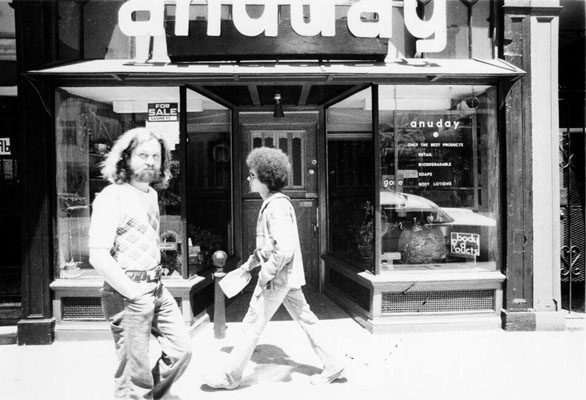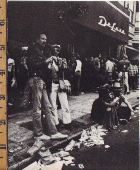 First Haight Street Fair, 1978 From David Wills, the photographer: “The photo outside the De Luxe is of Curtis Spangler (early ‘puter man) and Robert Pruzan (Photographer, mime) in 1978 at the first street fair.”