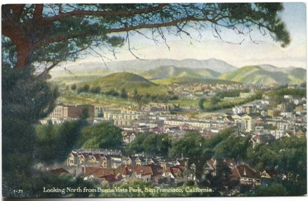 NE from Buena Vista Park, ca. 1905 “Looking NE across city toward Nob Hill from Buena Vista Park-Haight St.”