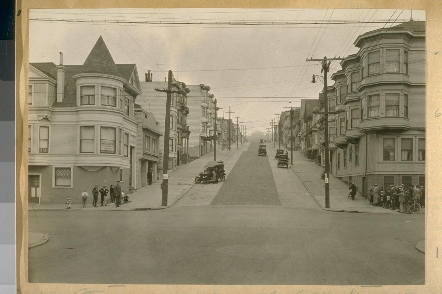 Haight near Belvedere, 1906 Note the Neda’s Flowers building on the left, built around 3 years earlier, designed by James McCarity