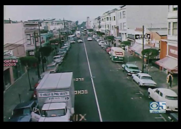 Haight St, 1967. Looking east from Ashbury This is a screen capture from a 1967 KPIX film narrated by Michael McClure called The Maze. View it here: http://diva.sfsu.edu/collections/sfbatv/bundles/189371