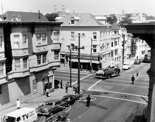 All Saints Episcopal Church, 1953 Originally near the SW corner of Masonic & Haight it was moved intact to its present location at 1350 Waller in 1902-3. It would become the Diggers’ headquarters in 1966.