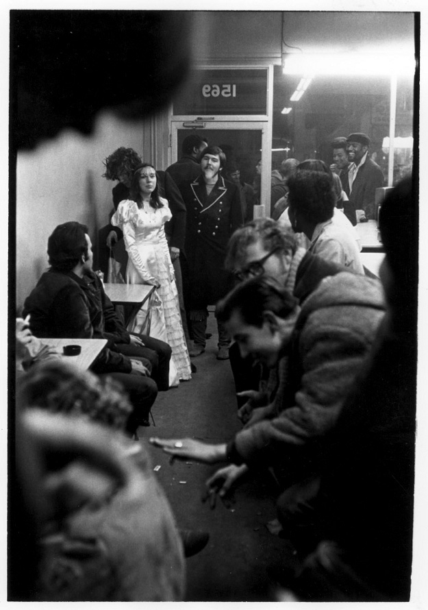 Group of men with autoharps standing in front of a large outdoor crowd at Human Be-In