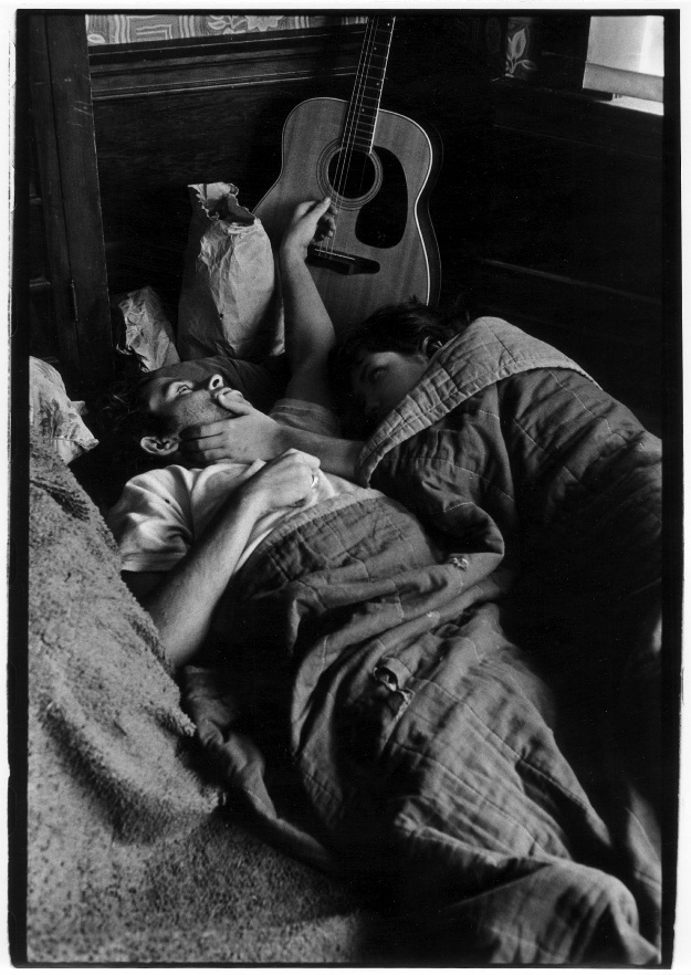 Group of young people talking on a sidewalk; to the side a woman leans against a VW Bug across from Pacific Drugs
