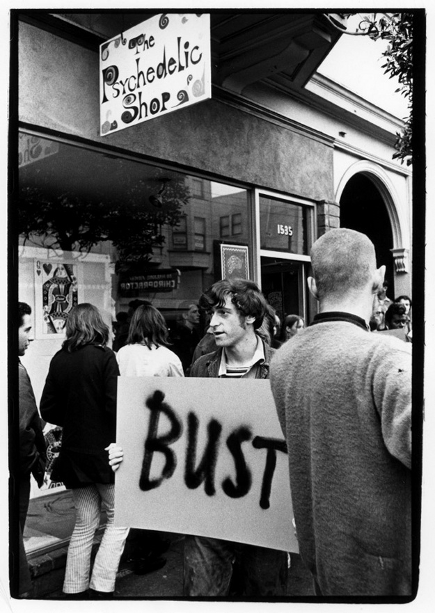 Sidewalk in San Francisco; man outside %22The Psychedelic Shop%22