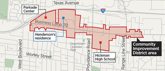 Self-interested business owners successfully petitioned the Columbia, Missouri, city council to create a local Community Improvement District, which would have the authority to impose a half-cent sales tax increase with voter approval. However, the district lines were drawn in a manner that attempted to avoid containing any eligible voters, meaning that property-owners themselves would get to decide on the sales tax increase as a way to avoid further property taxes to pay for improvements.
