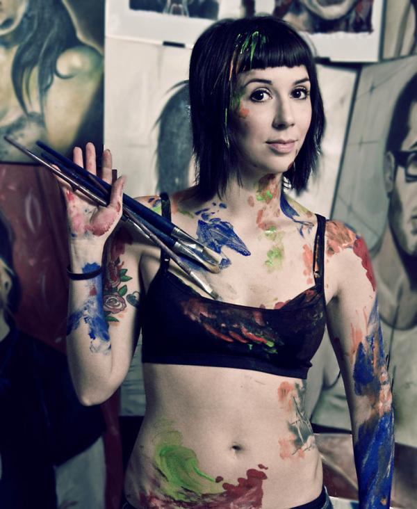 Here’s a time lapse of her painting a portrait of Joe Rogan: