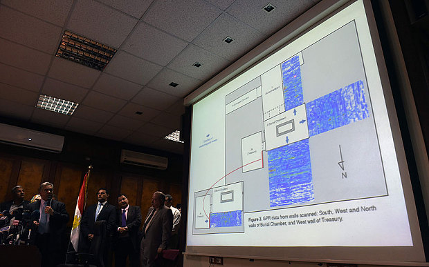 On Thursday, Mamduh al-Damati, the Egyptian antiquities minister, held a press conference in Cairo to announce a tantalizing new piece of evidence: Radar scans on those walls have revealed not only the presence of hidden chambers, but also unidentified objects that lie within these rooms.