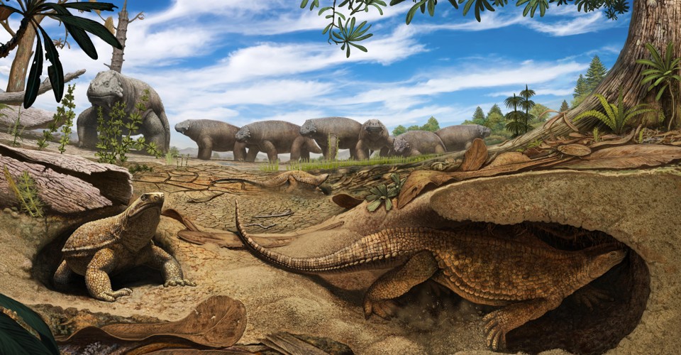 Travel back in time to 260 million years ago, just before the dawn of the dinosaur era. Journey to what is now South Africa, and make your way to a river bank.