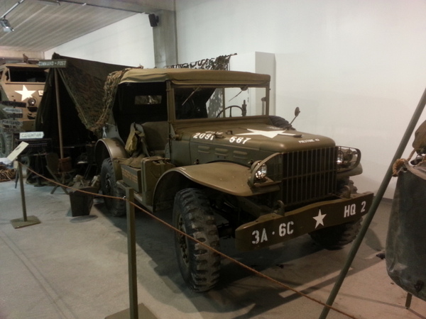 Highlights include a BMW R75 sidecar, Caterpillar D8, Citroën traction 38, M4 Sherman, M3A1 « Stuart », M5 Stuart, Dodge WC51/52, Dodge WC Command Car, Dodge WC-54 Ambulance, Flak 36 88mm, Ford M8 “Greyhound”, GMC DUKW, Cushman 53 “Para bike”, GMC CCKW-352/353, Half-Track M1/M5, Jeep Willys, Kübelwagen, LVT-4 (Landing Vehicle Tracked), M24 Chaffee, M7 Priest, M26 Dragon Wagon, Norton WD16H, Piper L-4 “Grasshopper”, a M15 tailor, Scout Car M3A1