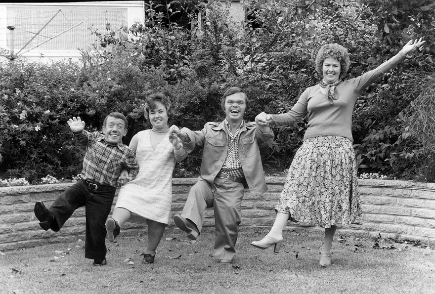 Kenny Baker and Jack Purvis of The Mini-tones theatre group are pictured with their wives