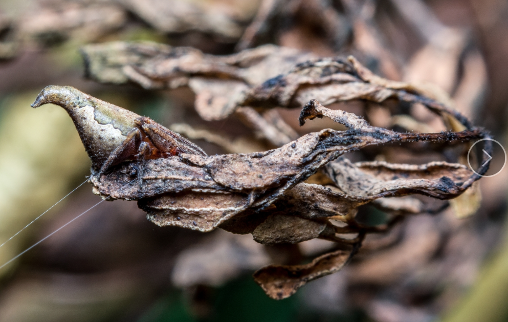 “Eriovixia gryffindori is nocturnal and during daylight hours its shape and colouring give it camouflage to blend in with dead, dry foliage.