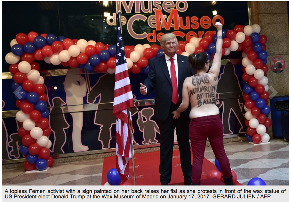 Source: Topless Madrid protester grabs crotch of Trump… waxwork