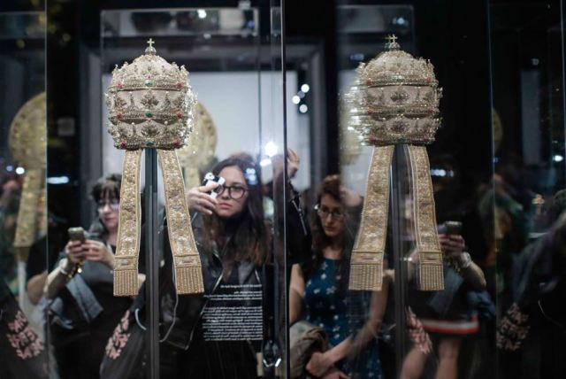 Imagination, on view from May 10 through October 8, 2018 is on view at The Met Fifth Avenue—in the medieval galleries. The thematic exhibition features a dialogue between fashion and masterworks of medieval art in The Met collection to examine fashion’s ongoing engagement with the devotional practices and traditions of Catholicism.The exhibition features approximately 40 ecclesiastical masterworks from the Sistine Chapel sacristy, many of which have never been seen outside the Vatican. Encompassing more than 15 papacies from the 18th to the early 21st century, these masterworks are on view in the Anna Wintour Costume Center galleries and include papal vestments and accessories, such as rings and tiaras. The last time the Vatican sent a loan of this magnitude to The Met was in 1983, for The Vatican Collections exhibition, which is the Museum’s third most-visited show.