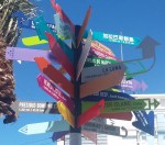 Amidst the palms are 3 pillars with arrows show direction and distance to places near and far. I’m sure the work has a name but as the construction of the brickwork surface is still going on, no identifying plaque has yet been added.