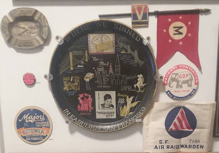 Bay Bridge ashtray, Victory matches, Matson Lines (1st to go union), 1964 GOP Conv, SF Air Raid warden WW2, Dairy where Roberts Hdware is today, 1970 SF State strike, WHERE WE SINNED IN FABULOUS SAN FRANCISCO 1940-ish