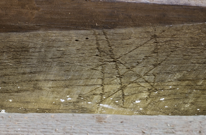The carvings included criss-crossed lines, interlocking V-shapes to invoke the protection of the Virgin Mary, and scorch marks made by directly burning the timber with a candle.